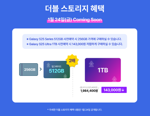 - 256GB 모델 구매 시 512GB로 무상 업그레이드 '더블 스토리지' 혜택