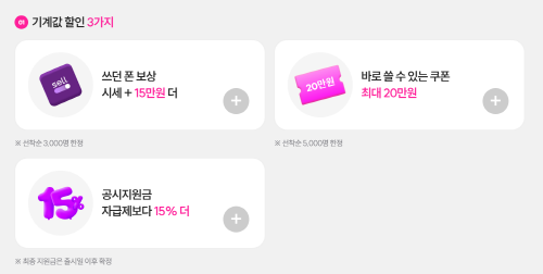- BC, 삼성, 신한카드 이용 시 최대 10만 원 한도 5% 캐시백 또는 12개월 무이자 할부