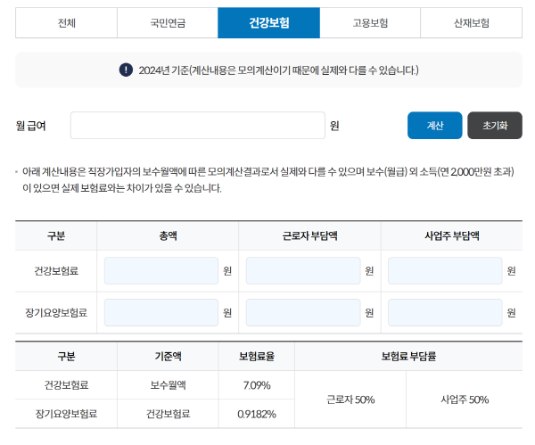 직장인의 건강보험료가 궁금하신 분은 아래에서 건강보험료 모의계산을 하실 수 있습니다.