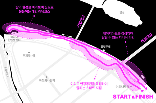 라이트 런은 빛 티셔츠를 입은 시민이 라이트 봉을 들고 여의도 공원 일대를 달리는 비주얼 러닝 프로그램으로 10월 12일 열리며 코스는 여의도 한강공원을 돌아 도착하는 5㎞입니다.