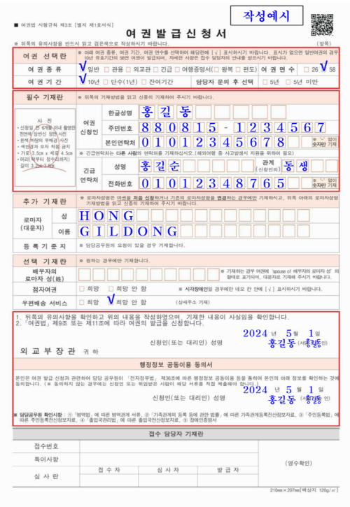 - 작성 방법: 여권 발급 신청서는 재발급 신청 시 여권 발급 기관(시청, 구청 등)에서 직접 작성할 수 있으며, 온라인 재발급 신청의 경우에는 온라인 신청서를 작성해야 합니다.