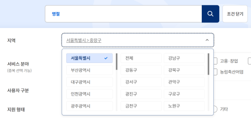 보조금24 카테고리에서 "명절" 키워드로 검색합니다.