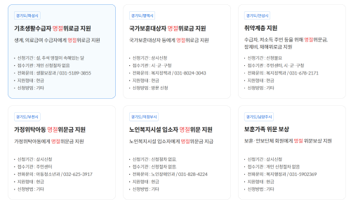 | 구로구 | 기초생계,의료 수급자등대상 설, 추석 명절위문비 지원 | ➡️ 바로가기 |